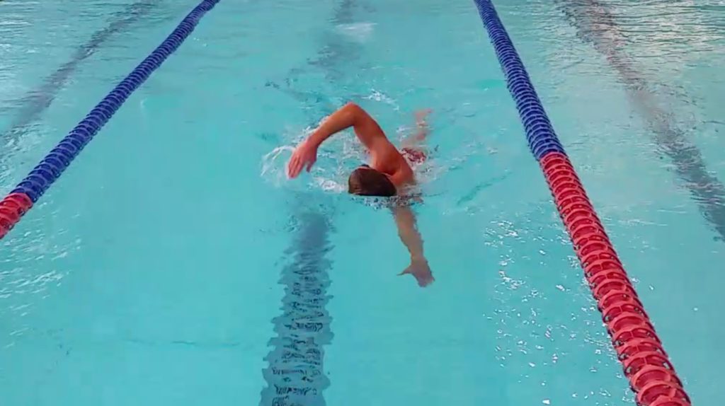 One of the things you can see in this video is how his hand direction is coming across the center on the entry which is causing the swimmer to go wide. The swimmer is going into a side to side movement which is causing the legs to splay at the back. When legs splay, it […]