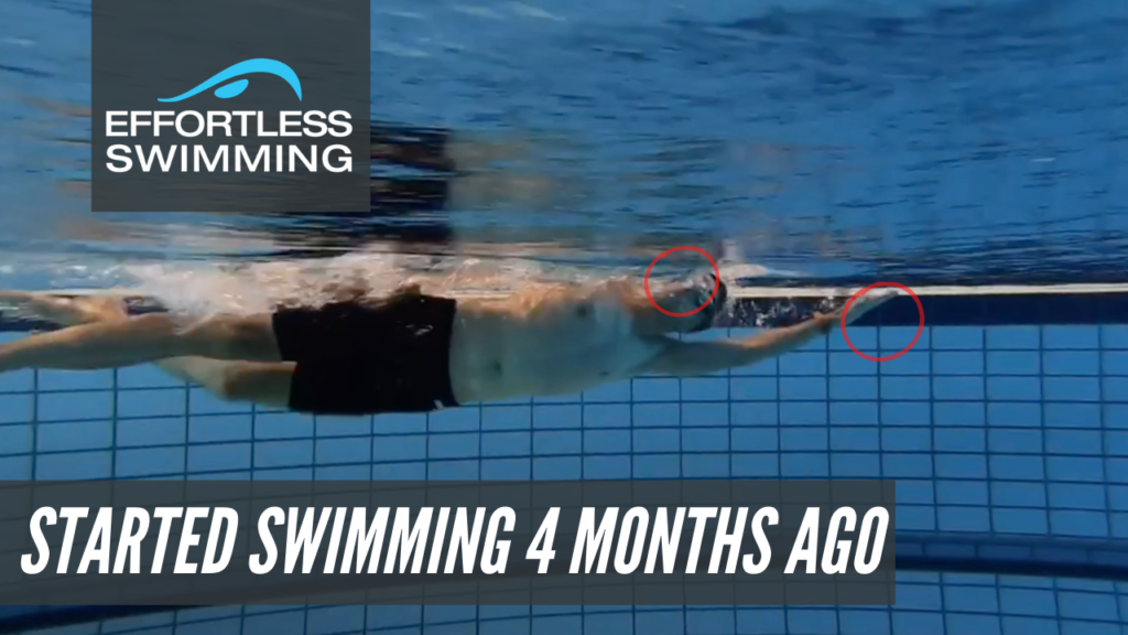 Martin started swimming 4 months ago, and is currently at 2:20/100m pace for 800m. In this video we look at some common technique traits that beginners do, and how he could increase his speed to well below 2:00/100m.